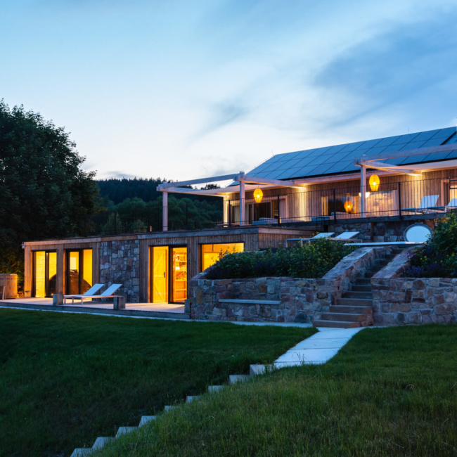 Drewno, kamień, ogień w kominku – wszystko tu przypomina, że prostota i jakość idą w parze. Rano kawa na tarasie, wieczorem rozmowy przy ogniu i niebo bez świateł miasta.